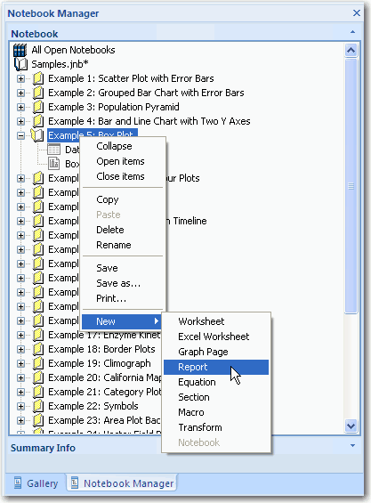 をクリックします。レポートウインドウが開き、選択したセクションに新規レポートが追加されます。