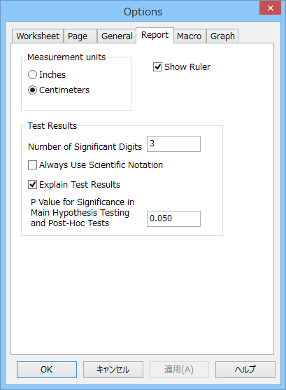 | ※ Note: この P 値は実際の検定結果に影響を与えません。これは群の平均値の差が偶然または、無作為抽出のばらつきによるかを示すテキストにのみ影響を与えます。 |