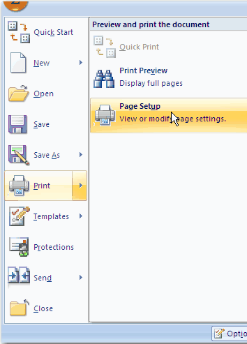 - プリンタを選択するには、Printer (プリンタの設定) をクリックします。Page Setup (ページ設定) ダイアログボックスが表示され、使用可能なプリンタを選択して指定することができます。
