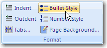 - 選択した段落に箇条書きの黒丸や番号を追加するには、Format グループから Bullets または Numbering を選択します。