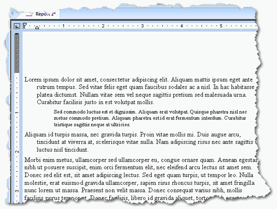 各段落には、左、右、一行目のインデント (字下げ) を設定することができます。これらの設定はレポートと共に保存されます。