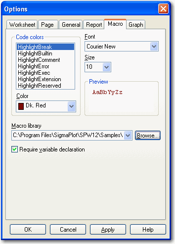- 表示された Options ダイアログボックスで Macro タブをクリックします。