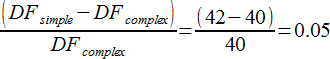 上記2つの方程式を以下に示すグラフのデータにあてはめると、平方和と自由度はいずれも相対的に増加します。