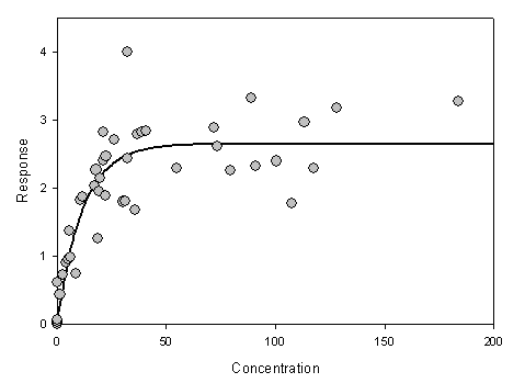 F Test Comparison of Curves マクロを使用すると、2つの方程式のあてはまりを比較して、より複雑な方程式のほうが有意によくあてはまるかどうかを決定することができます。検定を有効にするには、2つの方程式がネストされていなければなりません。つまり、単純な方程式は、さらに複雑な方程式の一部 (サブセット) である必要があります。