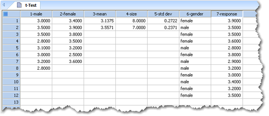 t 検定 (t-Test) と一元配置分散分析 (One Way ANOVA) では、以下のデータも利用できます: