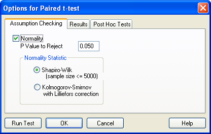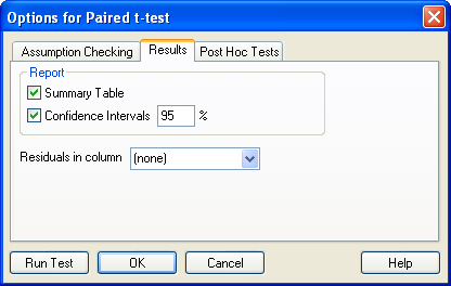 Options for Paired t-test ダイアログボックスに以下の3つのタブが表示されます: