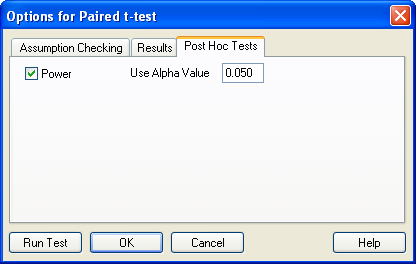 Post Hoc Tests :検出力 (Power)、すなわち、検定の感度の計算するかを指定します。詳しくは、Options for Paired t-Test: Post Hoc Tests をご覧ください。設定したオプションの内容は、SigmaPlot を次回使用するときも保持されます。