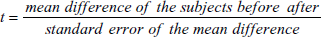t 検定の統計量は、実験の被験者それぞれについて処置後に測定された値から処置前の値を差し引くことによって算出します。残りの分析は、これらの差について実施します。