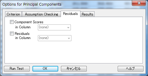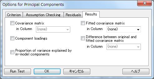 Options for Principal Component Analysis ダイアログボックス