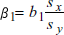 ここで、b1 = 回帰係数、sx = 独立変数 x の標準偏差、そして、 sy = 従属変数 y の標準偏差です。