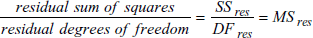 残差平均平方 (residual mean square) は、回帰直線に関する残差のばらつきの測度です。次式で与えられます:
