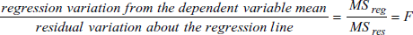 F が大きな値である場合は、独立変数が従属変数の予測に寄与していると結論付けることができます (すなわち、係数の少なくとも1つがゼロでなく、かつ、説明できないばらつき (unexplained variability) が、無作為抽出した従属変数の平均に関するばらつきの期待値より小さい場合) 。F 比が 1 に近いときは、変数間には関連性がないと結論付けることができます (すなわち、このデータは、すべての標本がランダムに分布しているという帰無仮説と合致します)。