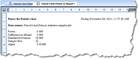 対応のある t 検定について、その検出力を決定することができます。対応のある t 検定を使用することで、同一個体に対して単一の処理、または、条件変更を行いその事前と事後に違いがあるか否かを調べることができます。処理効果の大きさは、正規分布に従うものと仮定されます。詳しくは、対応のある t 検定をご覧ください。