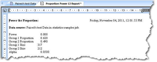 - Save to Report をクリックすると、検出力の計算の設定内容とそれによって得られた結果が現在のレポートに保存されます。