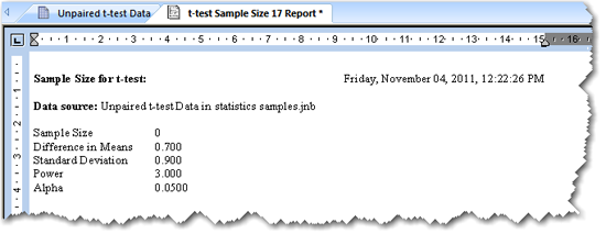 - Save to Report をクリックすると、サンプルサイズの計算の設定内容とそれによって得られた結果が現在のレポートに保存されます。