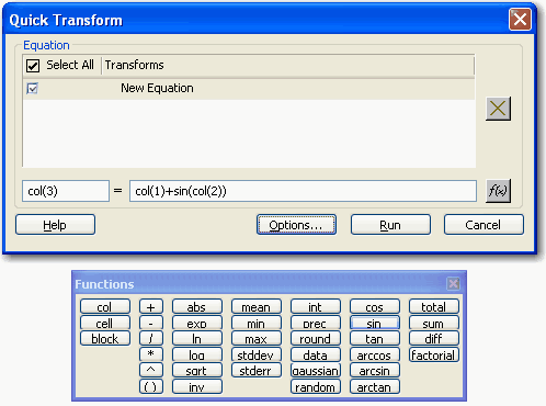 図 13.14 このトランスフォームは、列2の各データにサイン関数を適用し、その結果を対応する列1のデータにそれぞれ加えるものです。
