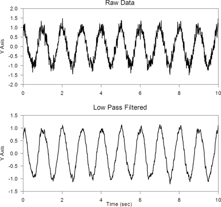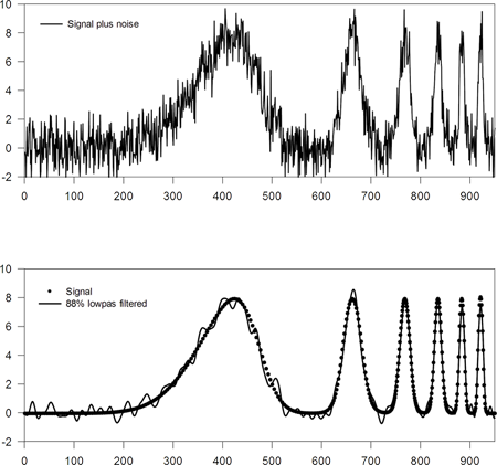 このトランスフォームは、高周波成分を低減したデータ配列を生成するスムージングフィルタです。出力されたデータは、オリジナル X データを使用してグラフ化することができます。