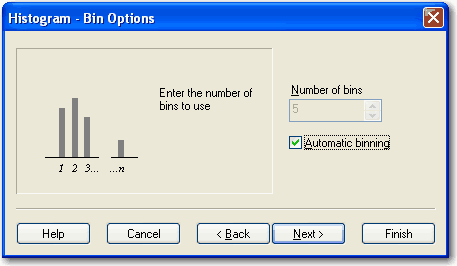 パネルが表示されます。表示するビン数 (階級数) を算出するアルゴリズムは、データのポイント数がベースになります。