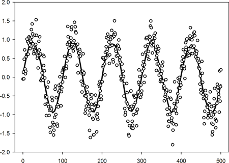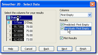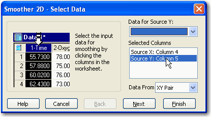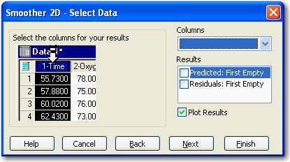 Smooth 2D Data ダイアログボックスを使って、高周波ノイズの除去のような望ましくない高周波の成分をデータから取り除くことができます。