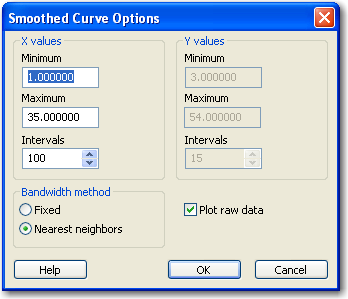 2D 曲線のスムージングオプションを設定するには、Smoothed Curve Options ダイアログを使用します。