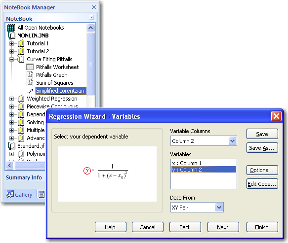 3つのウィザードのうちのいずれかを開いている場合は、ノートブックの方程式をダブルクリックすることで方程式を切り替えることもできます。方程式を開いたら、Edit Code ボタンをクリックすることによって編集することができます。