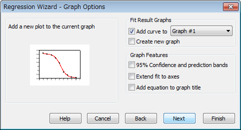 - Each Curve または All data in plot オプションを選択し、回帰直線の種類に点線を選択します。