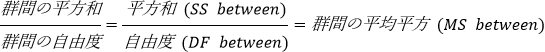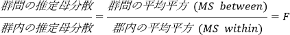 ● F: F 統計量は次の比であらわされます