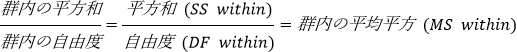 群内の平均平方 (誤差または残差平均平方とも言う) は次式であらわされます