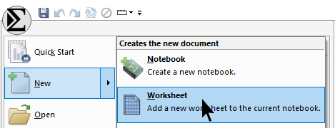 SigmaPlot の Σ メニューをクリックして New → Worksheet を選択し新規ワークシートを表示します。