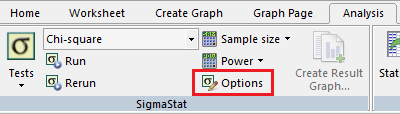 イェーツの補正を行う場合は、Analysis → Options をクリックします。