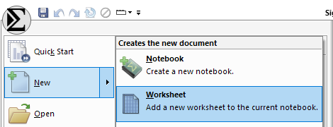 SigmaPlot の Σ メニューを選択して New → Worksheet を選択し新規ワークシートを表示します。