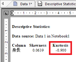 分布が正規分布に比べて緩尖の場合は、尖度が負の値になります。