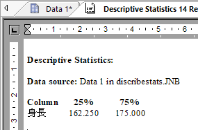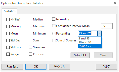 Options で「25 and 75」を選択して得られる計算結果は次のとおりです。