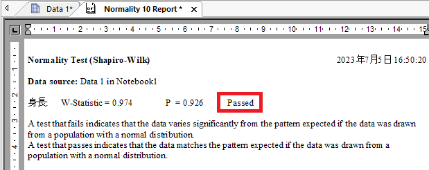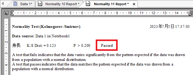 次のとおりいずれも Passed と表示され正規分布であることがわかります。