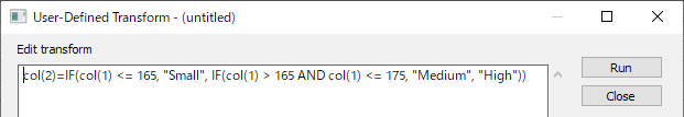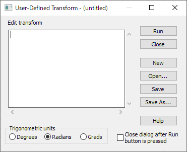 User-Defined Transform ウィンドウの Edit transform に下記を入力して Run を押します。