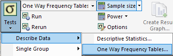 Analysis タブ→ Tests → Describe Data → One Way Frequency Tables… を選択します。