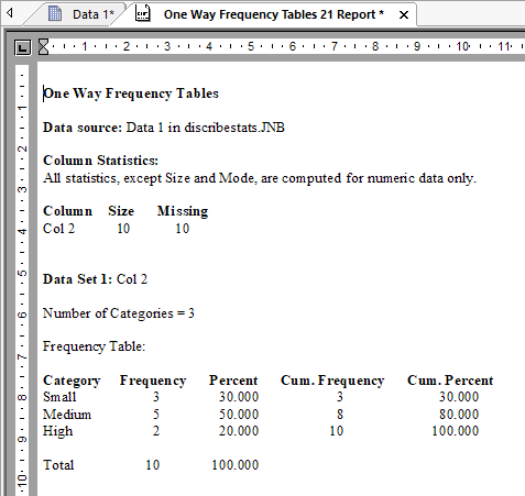 次のとおり、カテゴリデータに関する度数分布表のレポートが得られます。