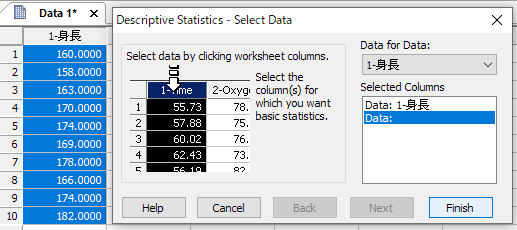 SigmaPlot では、統計量やグラフを使用してデータを簡単に要約することができます。次項から、10 名分の身長の計測データ (表1) を例として、各統計値を評価する手順を示します。