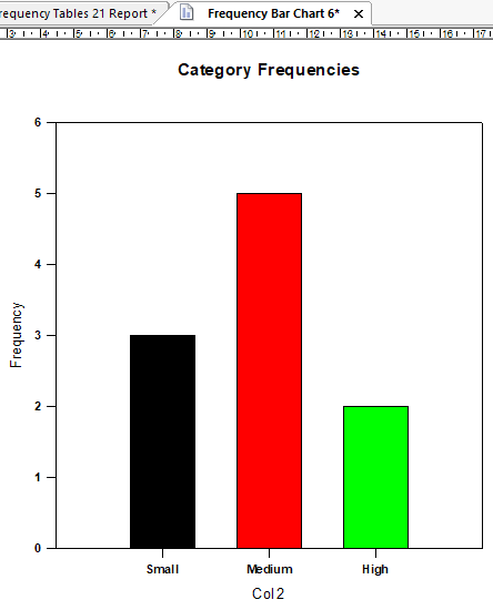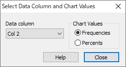 Frequencies (度数) または Percents (パーセント) を選択して Close を押すと度数棒グラフを表示します。