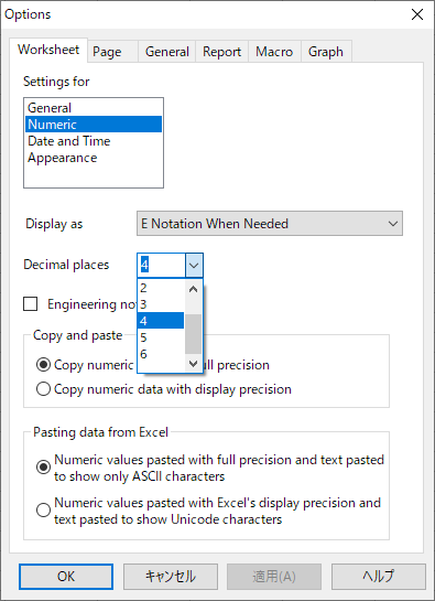 桁数は Σ メニュー → Options の Worksheet タブで変更できます。