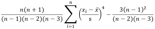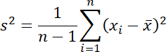 不偏分散と標準偏差は、分布の散らばりの測度として最もよく使用されます。不偏分散は、次の式で求められます。