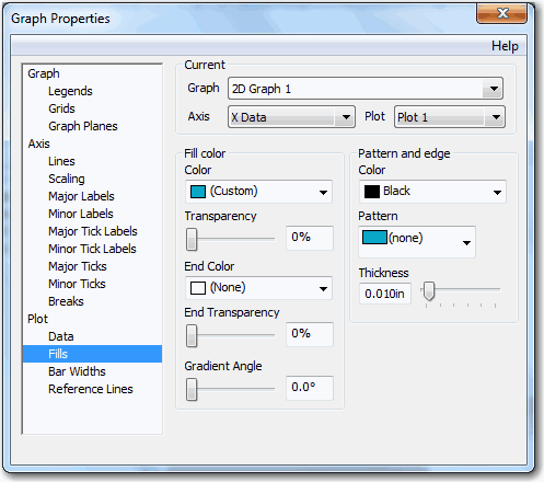 | ※ Note:グラフ上のどこをクリックしても Graph Properties は開きますが、特定の塗り (または、オブジェクト、プロット、軸など) の上でダブルクリックした場合、対象に適したプロパティが Graph Properties ダイアログに表示されます。 |