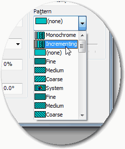 - Pattern and edge 項目の Pattern ドロップダウンリストを上にスクロールして、Incrementing を選択します。