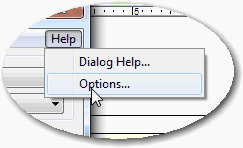 (※ v12.5 では、Help をクリックしたあと Options をクリックします。)