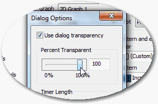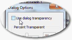 - Graph Properties が一時的に全く非表示になるように設定したい場合は、Use dialog transparency をオンにして、Percent Transparent スライダーを一番右に移動したら OK をクリックします。