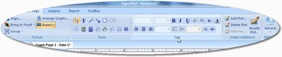 SigmaPlot は、グラフィック指向のグラフ編集プログラムですので、ほとんどの対象をクリックで選択し、そこで表示されるポップアップツールバーを使用してそのプロパティを変更することができます。