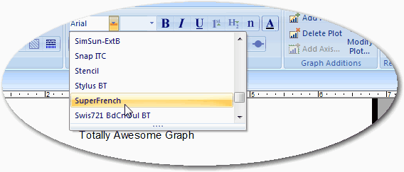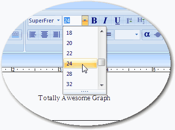 グラフページのフォントを変更する方法は2つあります。最も簡単なのは、テキストをクリックして表示されるポップアップツールバーを使用する方法です。フォント、サイズ、更には、ページに対する方向も変更することができます。