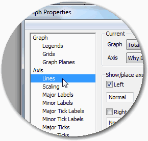 - Graph Properties で Axis をクリックしたら、プロパティリストから Lines をクリックします。