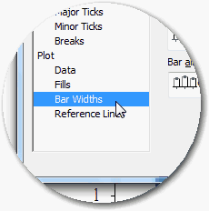- ここでは、プロパティリスト (Graph Properties ダイアログの左側) から Bar Widths (Plot の下にある) をクリックします。