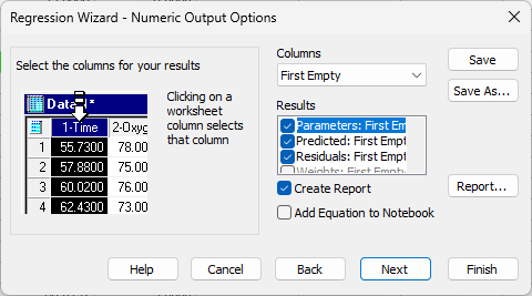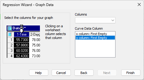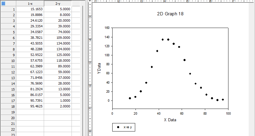 Finish をクリックすると、数値データとともにプロットが作成されます。